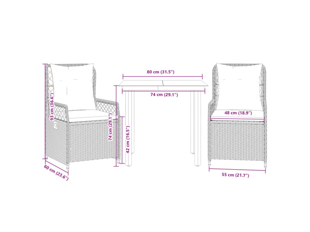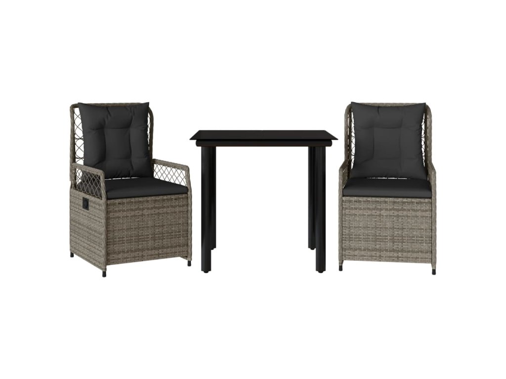 3dílný zahradní jídelní set s poduškami šedý polyratan 3262992