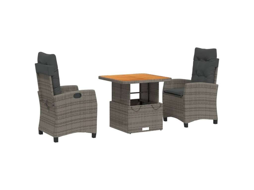 3dílný zahradní jídelní set s poduškami šedý polyratan 3277397