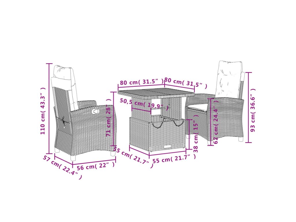- Rozměry stolu: 80 x 80 x 40/71 cm (D x Š x V)