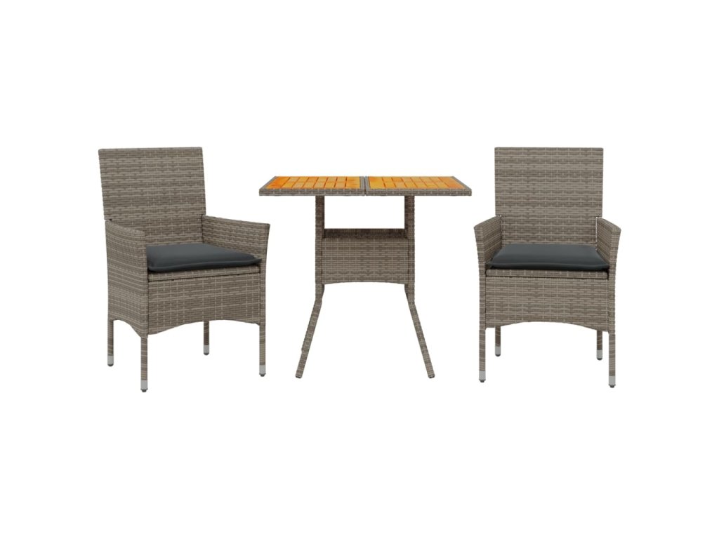 3dílný zahradní jídelní set s poduškami šedý polyratan a akácie 3278713