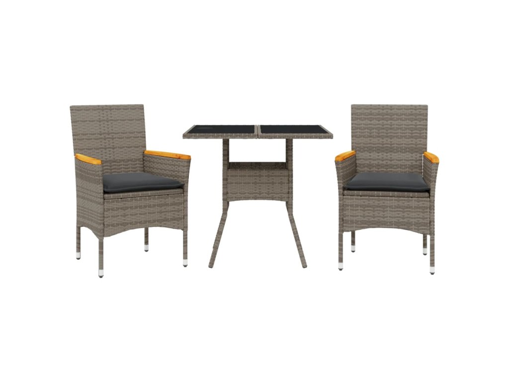 3dílný zahradní jídelní set s poduškami šedý polyratan a sklo 3278705