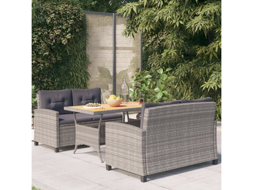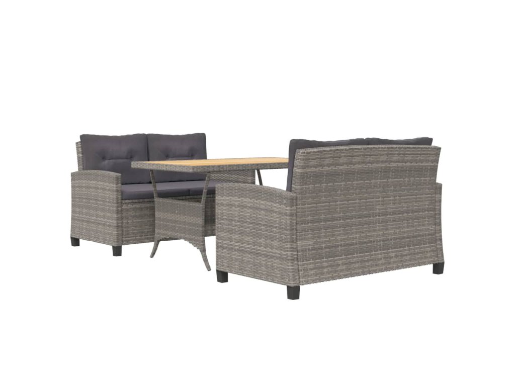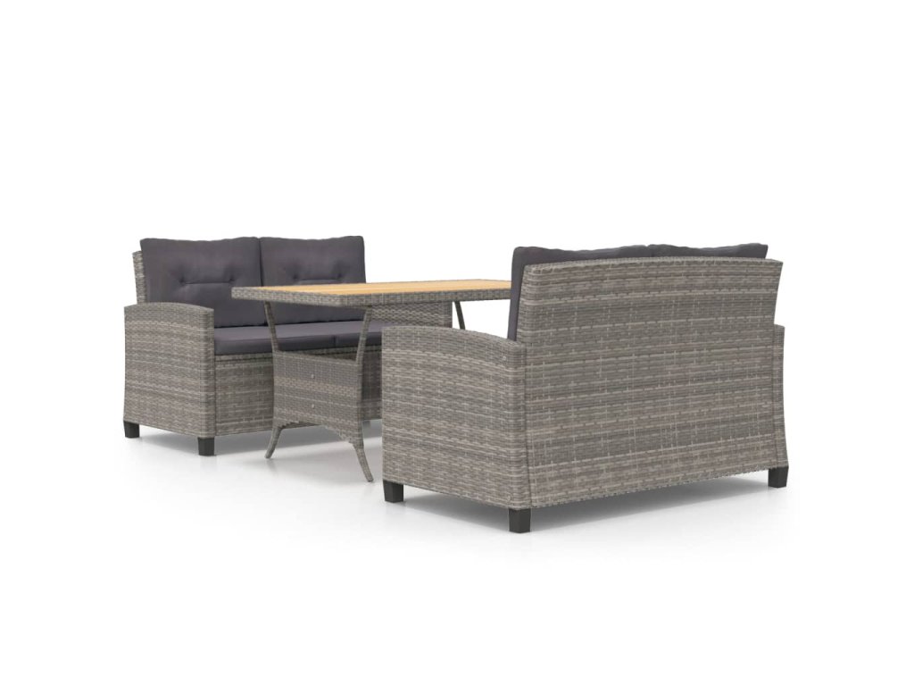 3dílný zahradní jídelní set s šedými poduškami polyratan 3095248