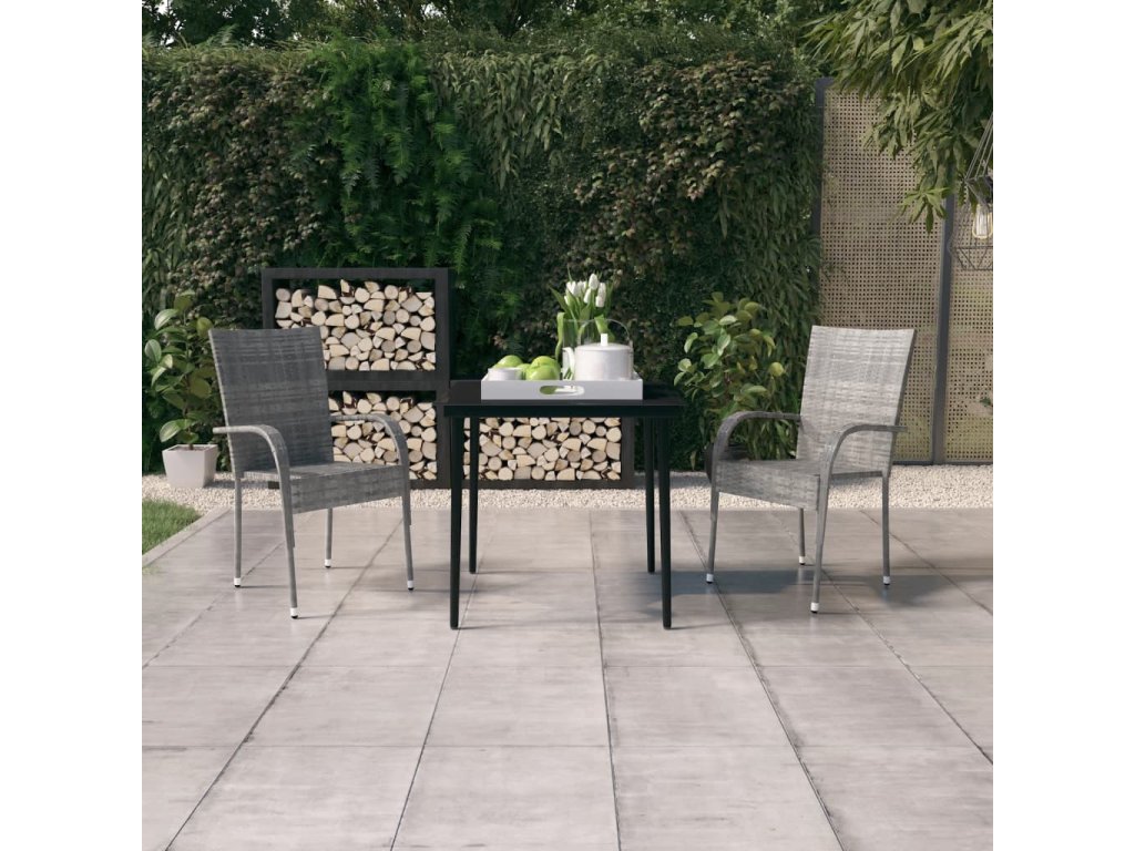 Stůl a židle mají rámy z práškově lakované oceli, jsou tedy dostatečně robustní a stabilní pro každodenní venkovní použití. Židle jsou zhotoveny z voděodolného PE ratanu, takže se snadno čistí a jsou vhodné pro každodenní použití. Hladká skleněná stolní deska se snadno čistí vlhkým hadříkem a navíc se skvěle hodí k servírování jídla a nápojů či k vystavování různých dekorací.