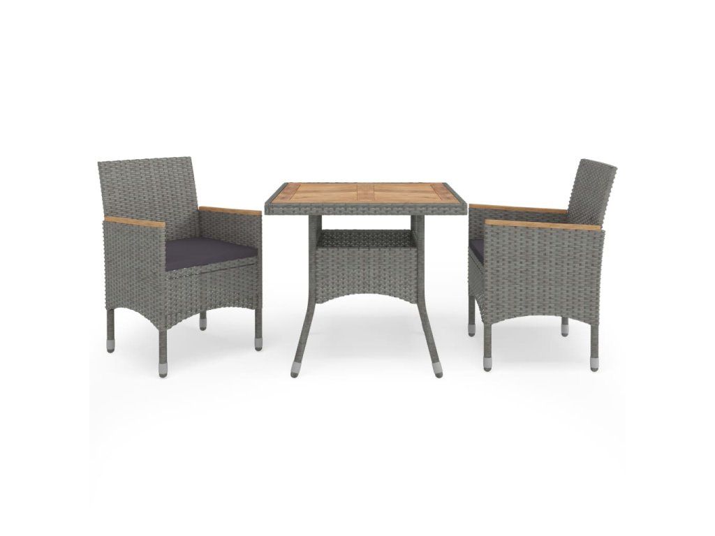 3dílný zahradní jídelní set šedý polyratan a akáciové dřevo 3058317