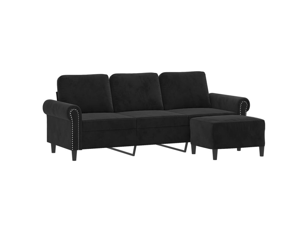 3místná pohovka s podnožkou černá 180 cm samet 3201220