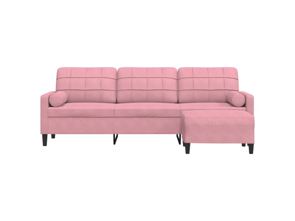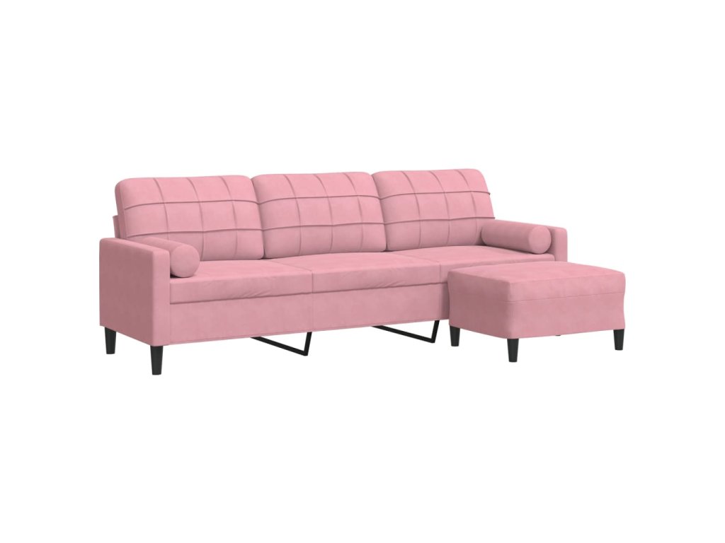 3místná pohovka s podnožkou růžová 210 cm samet 3278280