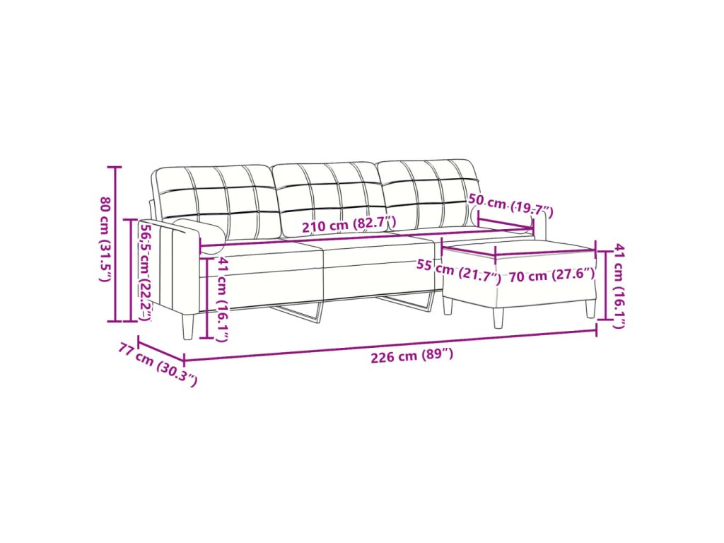 - Celkové rozměry: 226 x 77 x 80 cm (Š x H x V)
