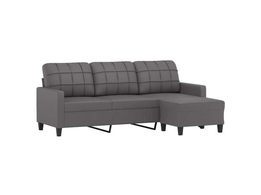 3místná pohovka s podnožkou šedá 180 cm umělá kůže 3201016