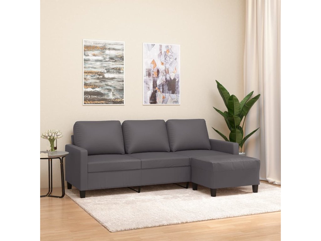 3místná pohovka s podnožkou šedá 180 cm umělá kůže 3201026