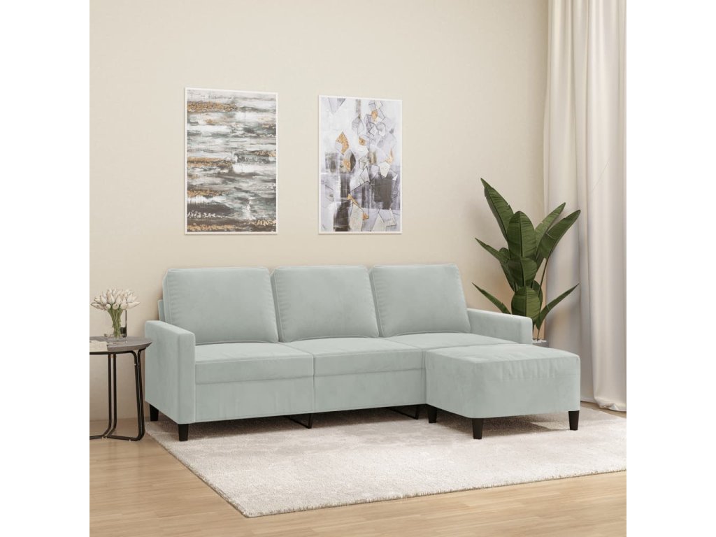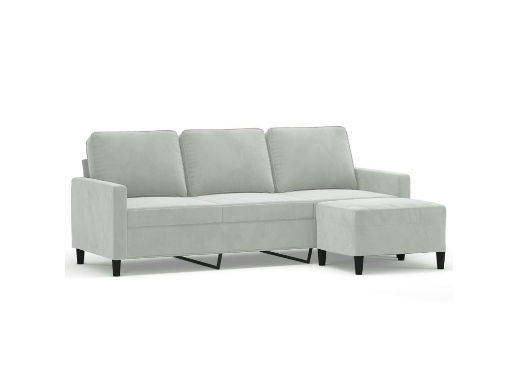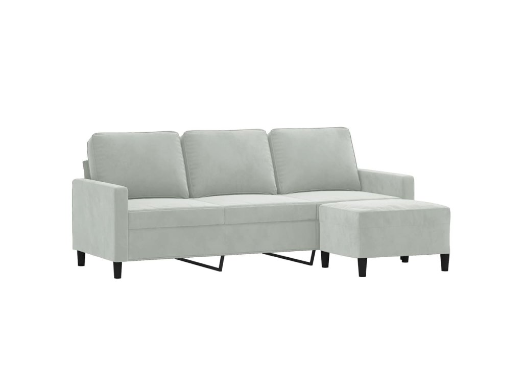 3místná pohovka s podnožkou světle šedá 180 cm samet 3201055