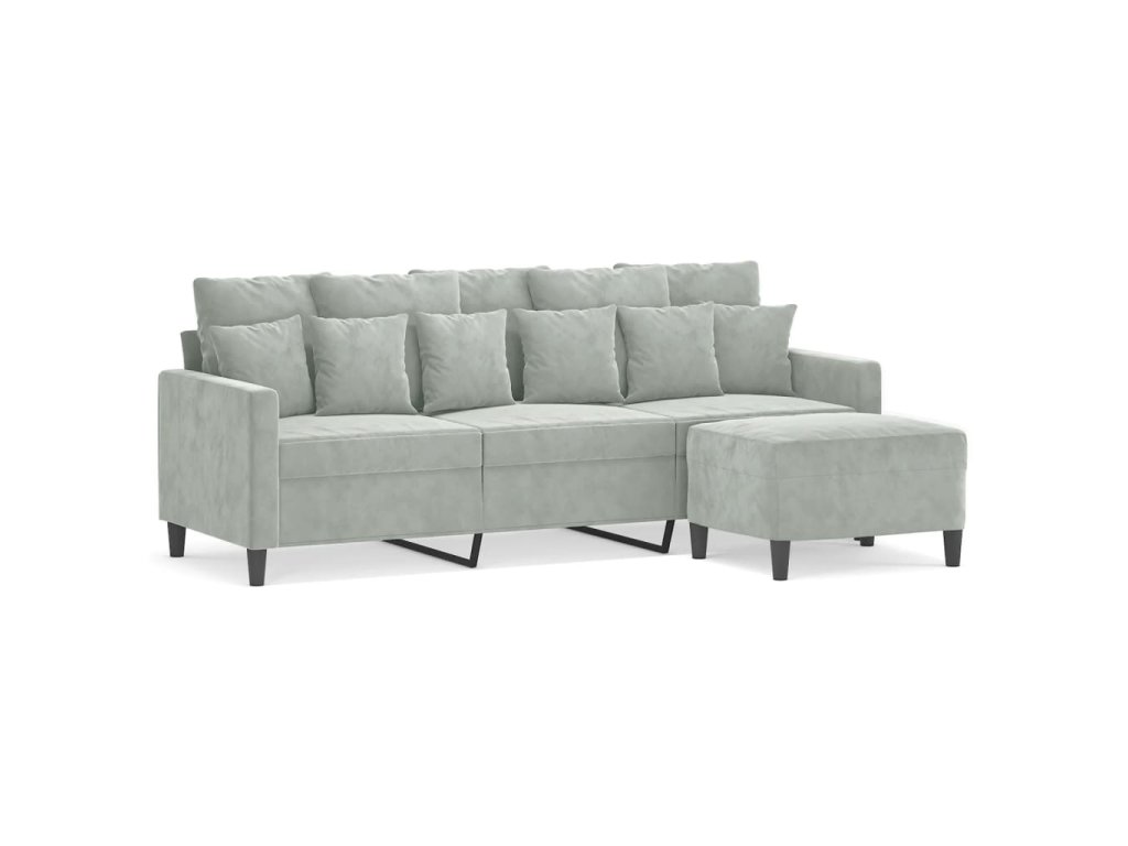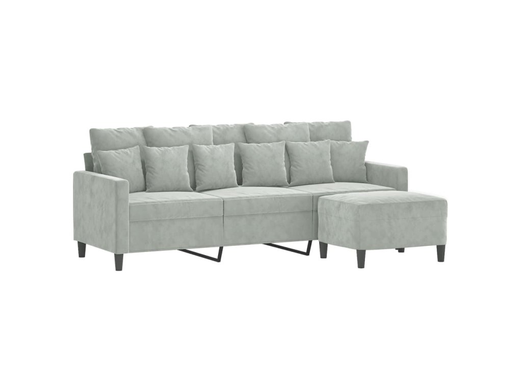 3místná pohovka s podnožkou světle šedá 180 cm samet 3201107