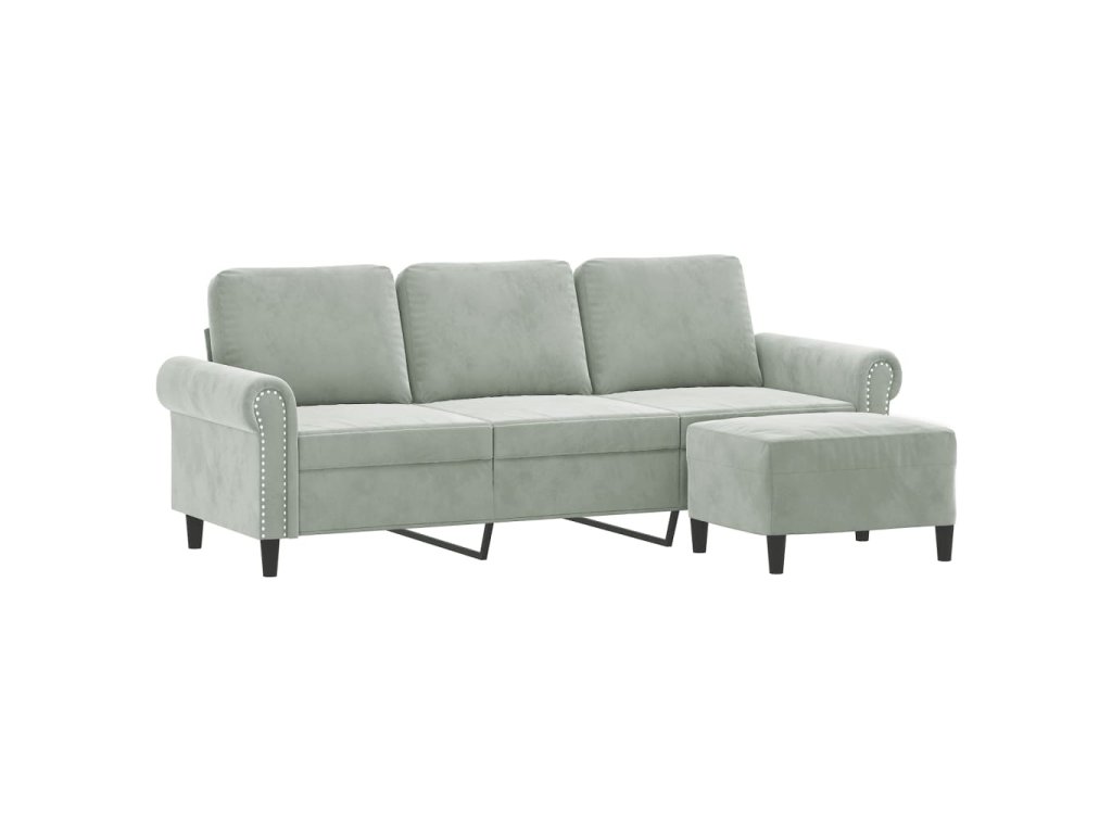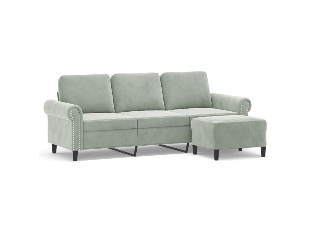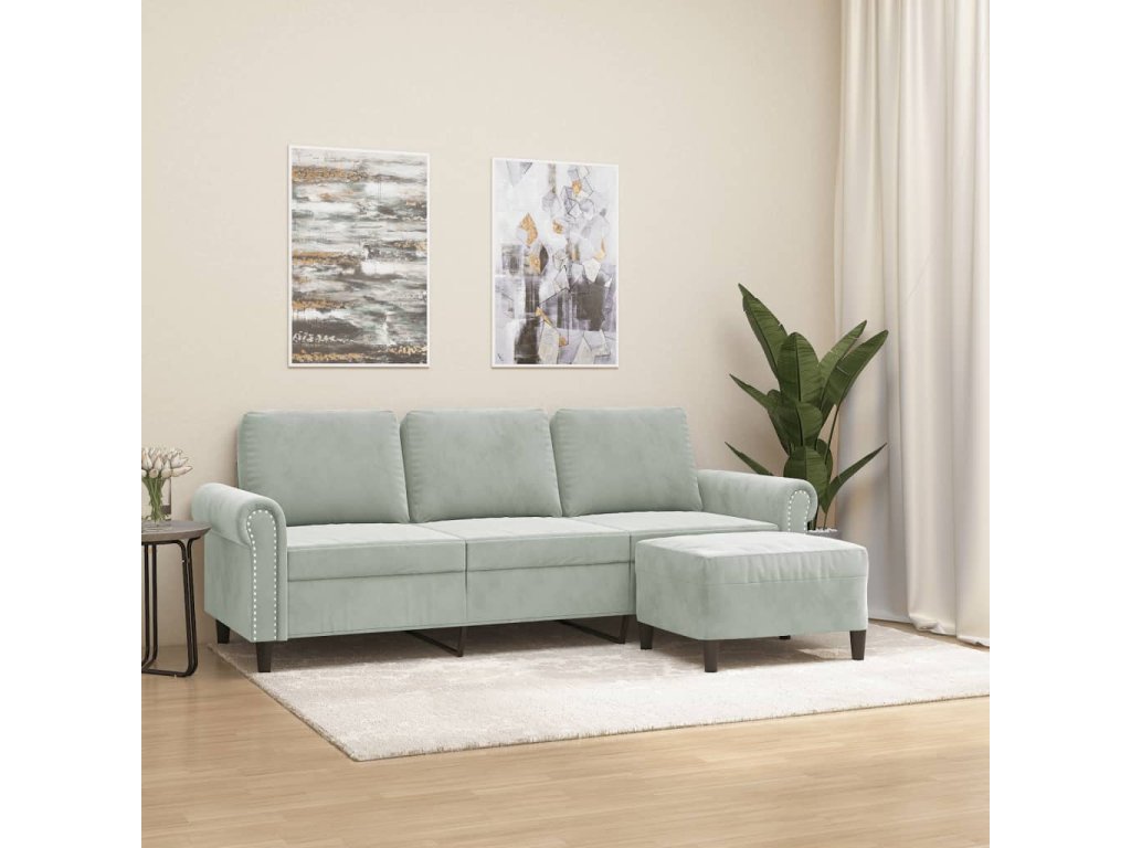 3místná pohovka s podnožkou světle šedá 180 cm samet 3201215