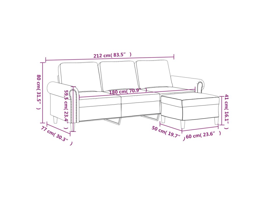 Tato 3místná pohovka s podnožkou je skvělým místem pro povídání, čtení, sledování televize nebo jen tak k odpočinku. Bude ústředním bodem vašeho interiéru.