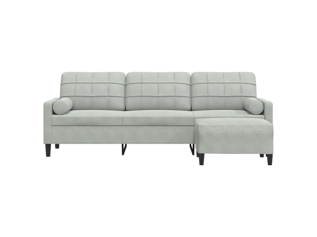 3místná pohovka s podnožkou světle šedá 210 cm samet 3278277