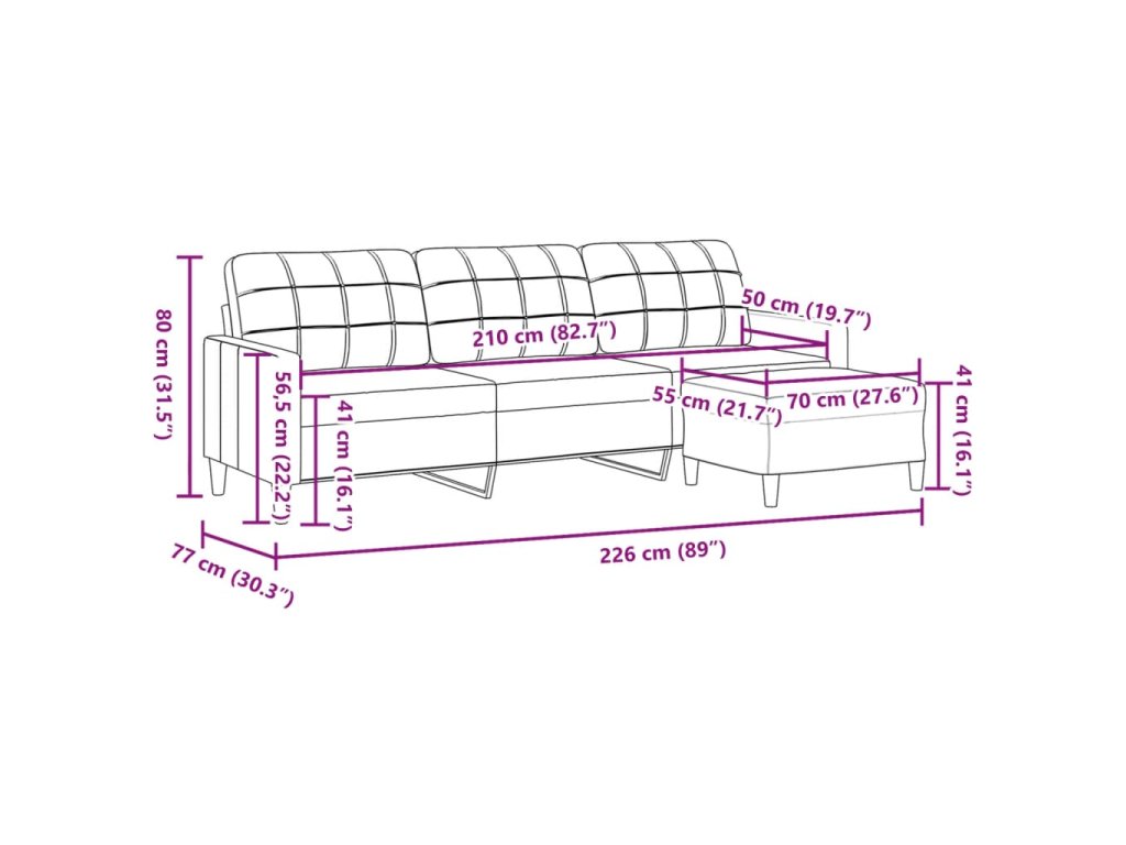 - Celkové rozměry: 226 x 77 x 80 cm (Š x H x V)
