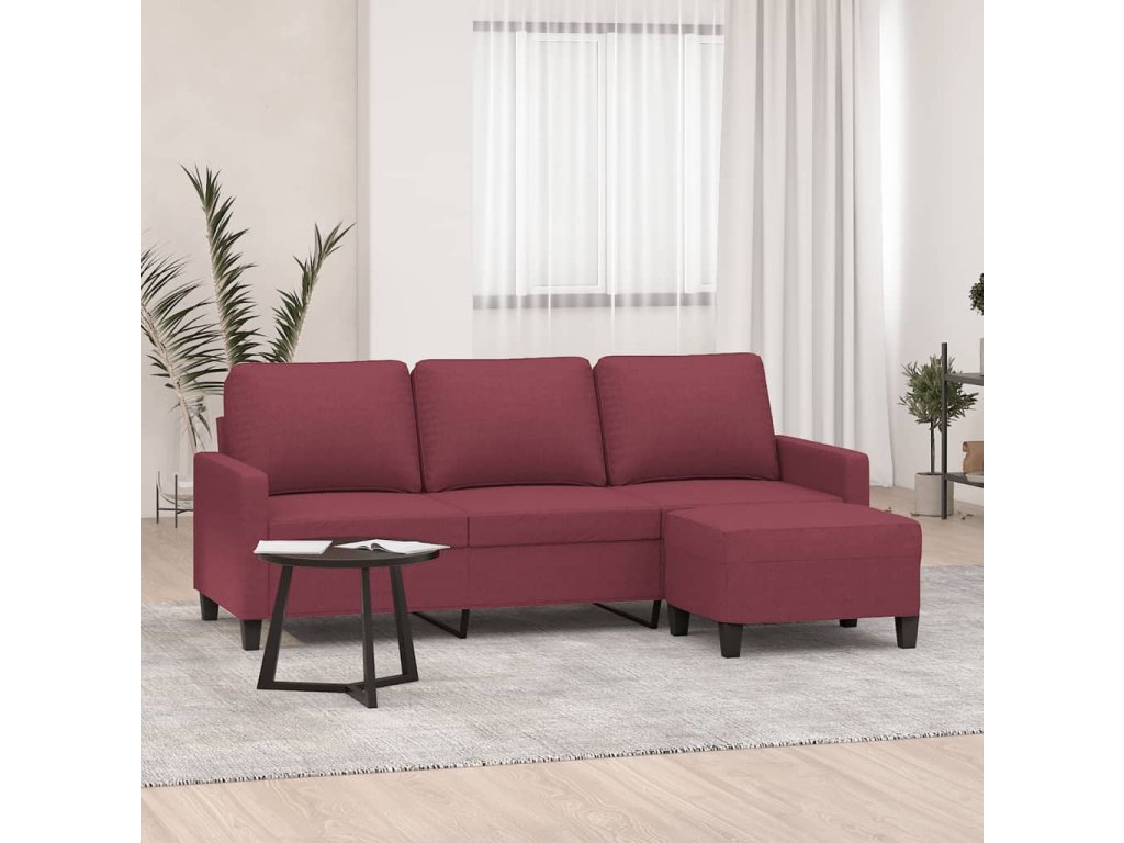3místná pohovka s podnožkou vínová 180 cm textil 3201043