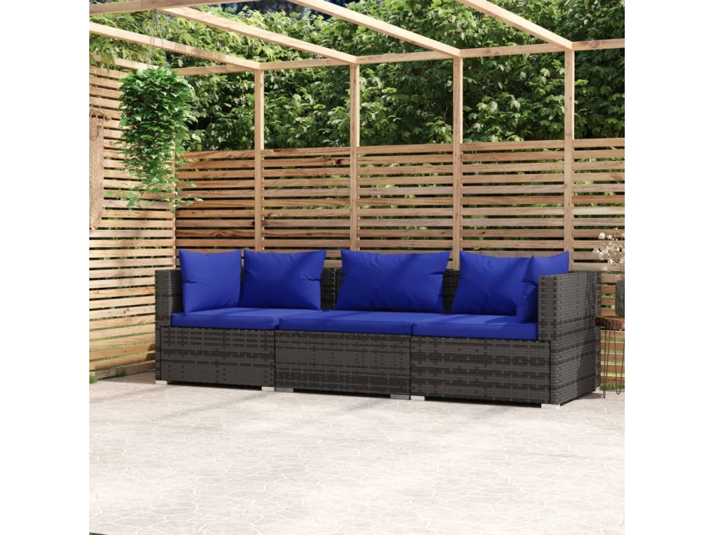 3místná pohovka s poduškami šedá polyratan 317566