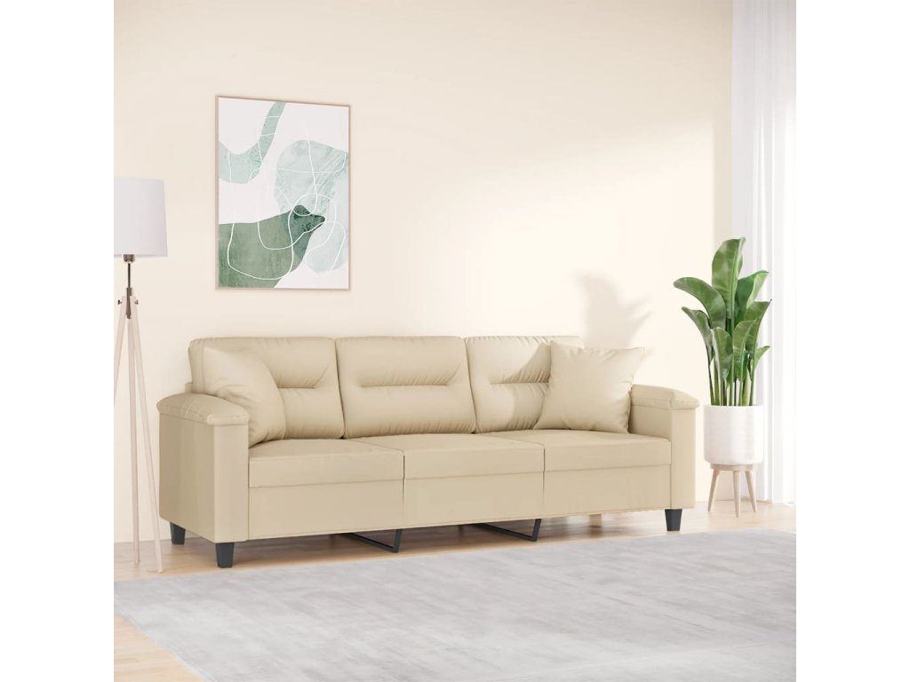 3místná pohovka s polštáři krémová 180 cm tkanina z mikrovlákno 3200981
