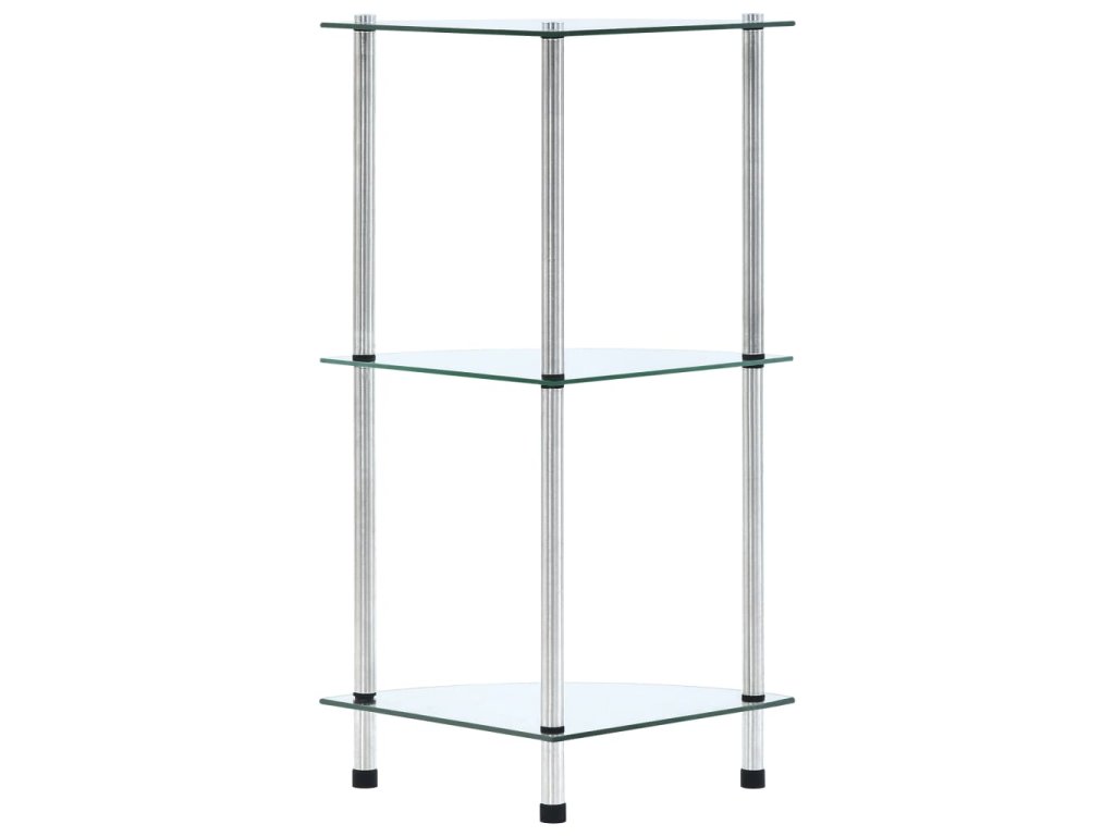 3patrová police průhledná 30 × 30 × 67 cm tvrzené sklo 249514