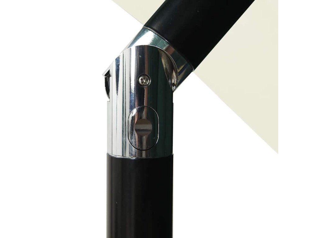 Zahradní slunečník je vyrobený z polyesteru, který nebledne a skvěle odolává UV záření, poskytne vám tedy optimální ochranu proti slunci. Stabilitu zajišťují práškově lakovaná hliníková tyč a žebra. Slunečník je vybavený klikovým mechanismem a funkcí naklápění, je skládací a přenosný. Můžete ho zasadit do svého stávajícího stojanu nebo doprostřed stolů s otvorem na slunečník.
