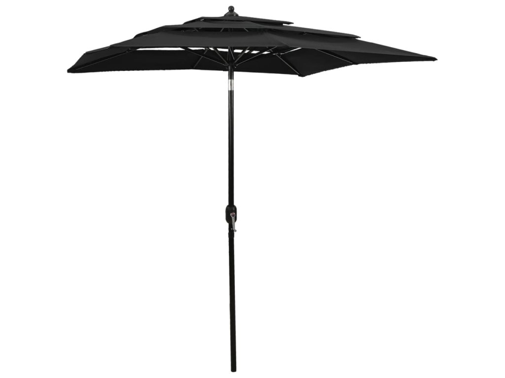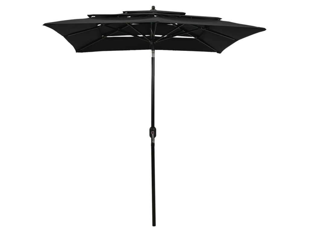 3stupňový zahradní slunečník s hliníkovou tyčí černý 2 x 2 m 313850