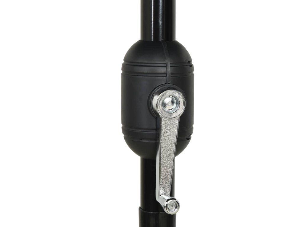 Zahradní slunečník je vyrobený z polyesteru, který nebledne a skvěle odolává UV záření, poskytne vám tedy optimální ochranu proti slunci. Stabilitu zajišťují práškově lakovaná hliníková tyč a žebra. Slunečník je vybavený klikovým mechanismem a funkcí naklápění, je skládací a přenosný. Můžete ho zasadit do svého stávajícího stojanu nebo doprostřed stolů s otvorem na slunečník.