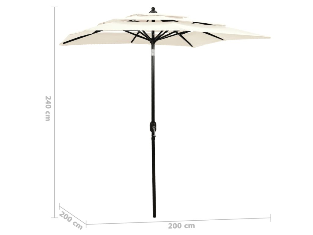 3stupňový zahradní slunečník s hliníkovou tyčí pískový 2 x 2 m 313844