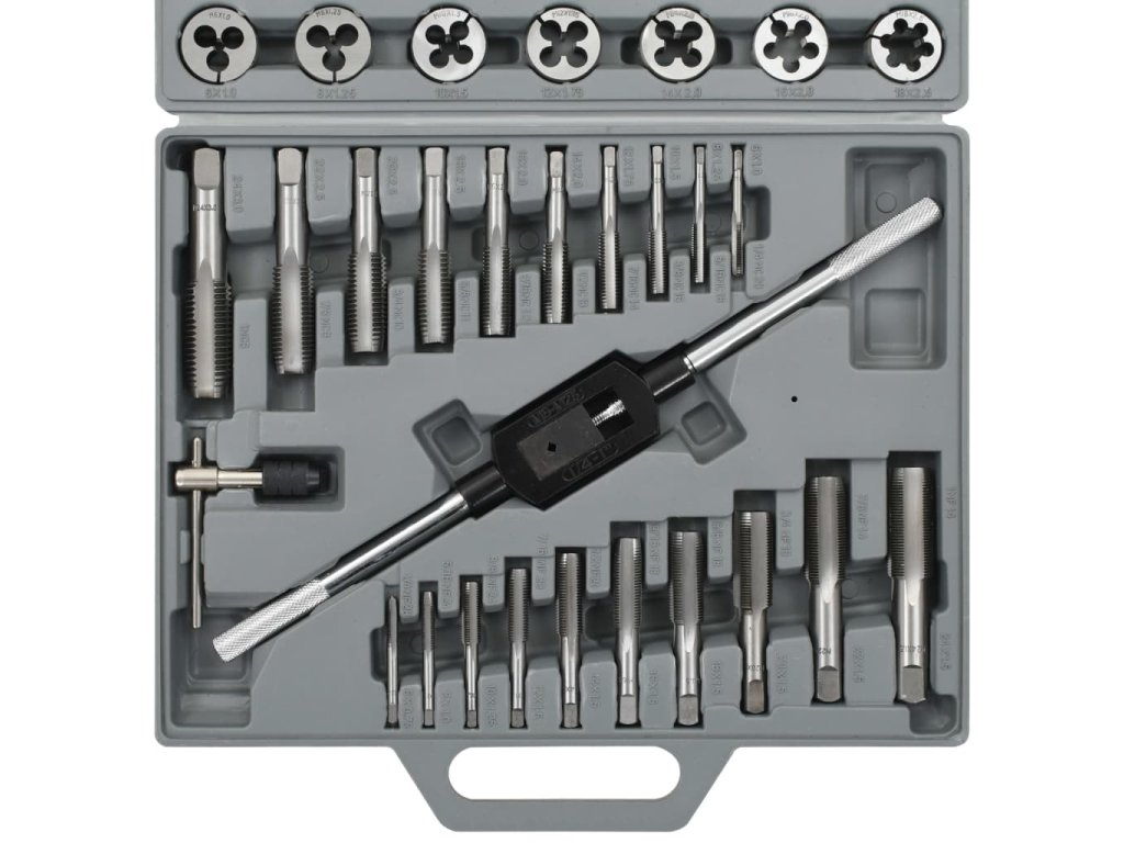 Tato praktická 45kusová sada závitníků a oček se skvěle hodí pro řezání a čištění vnitřních i vnějších závitů a může být užívána jak mechaniky, tak automechaniky.
