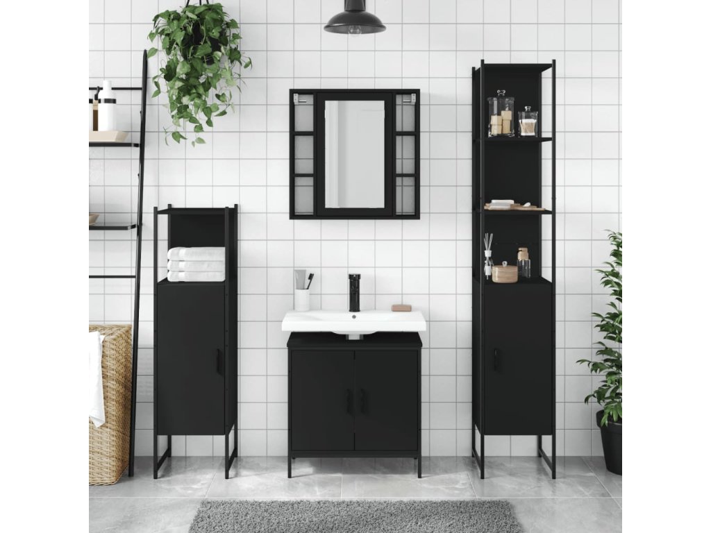 4dílná koupelnová sestava černá kompozitní dřevo 3214770