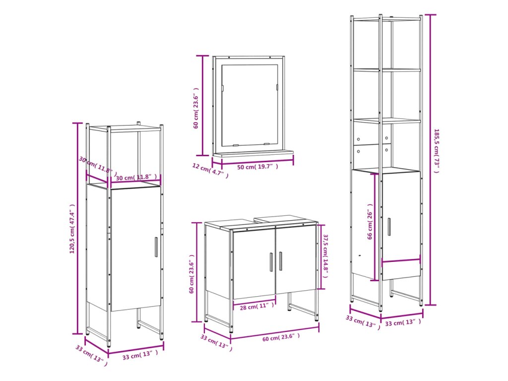 4dílná koupelnová sestava kouřový dub kompozitní dřevo 3214356