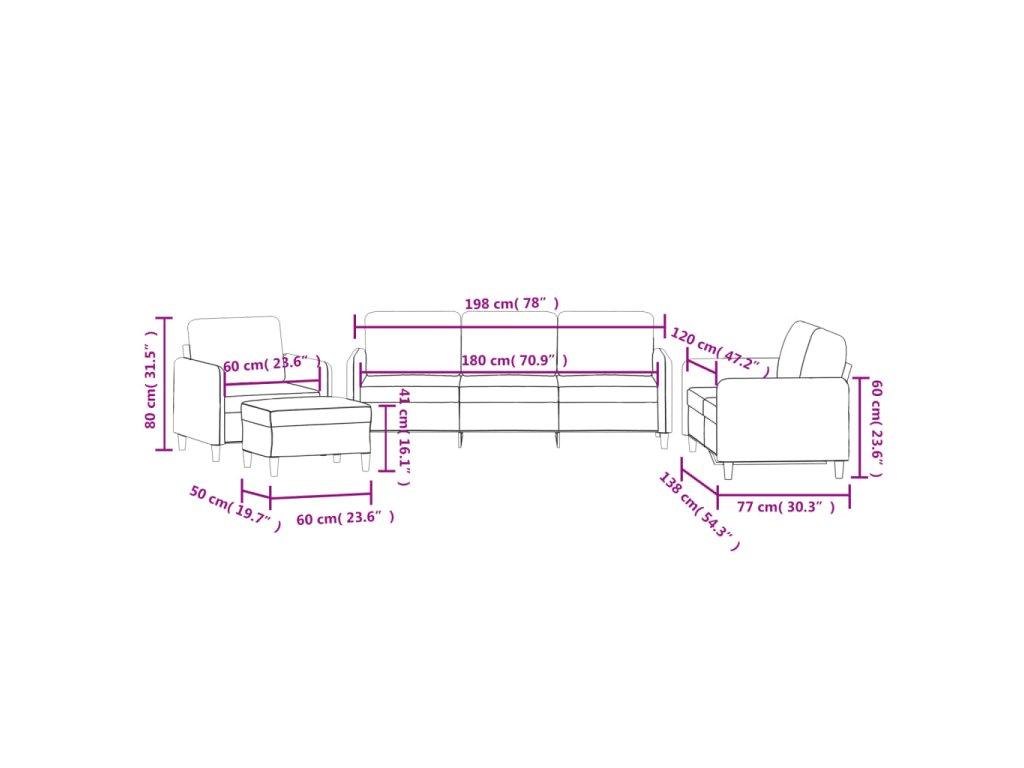 - Celkové rozměry: 198 x 77 x 80 cm (Š x H x V)