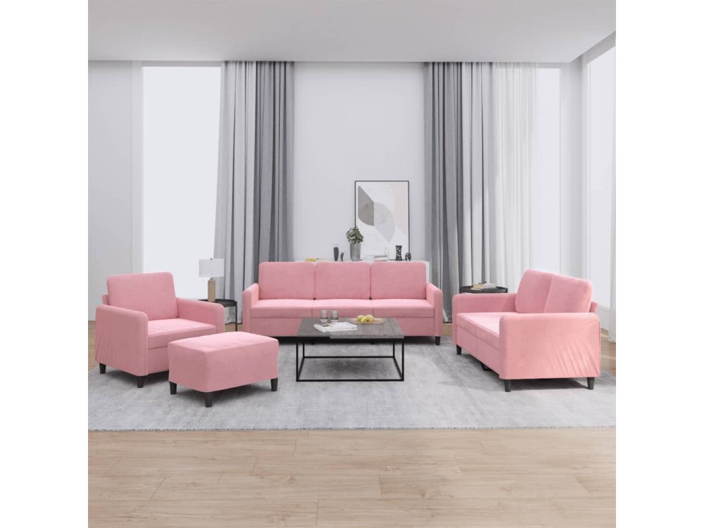 4dílná sedací souprava růžová samet 3201947