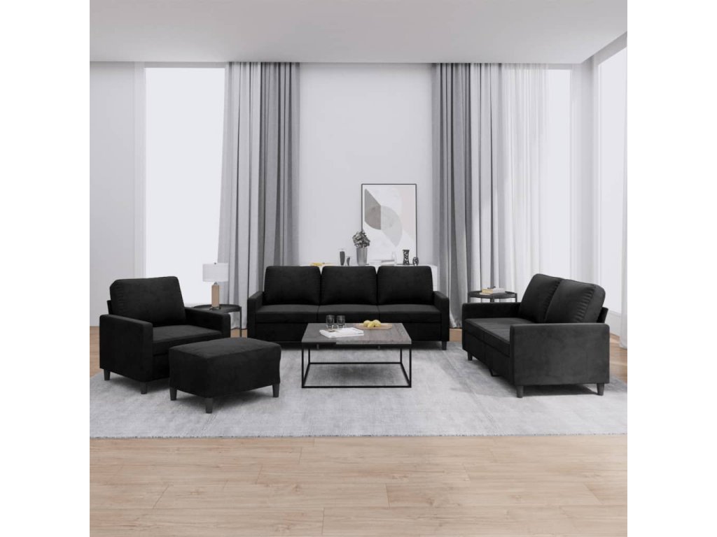 4dílná sedací souprava s poduškami černá samet 3201491