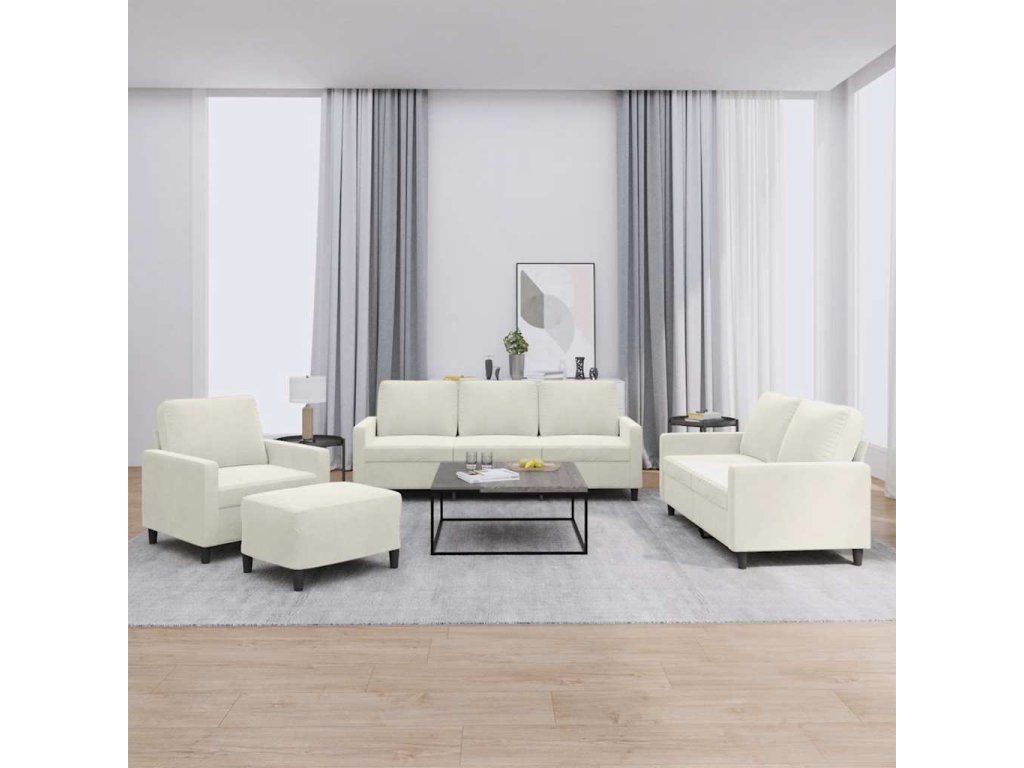 4dílná sedací souprava s poduškami krémová samet 3201494