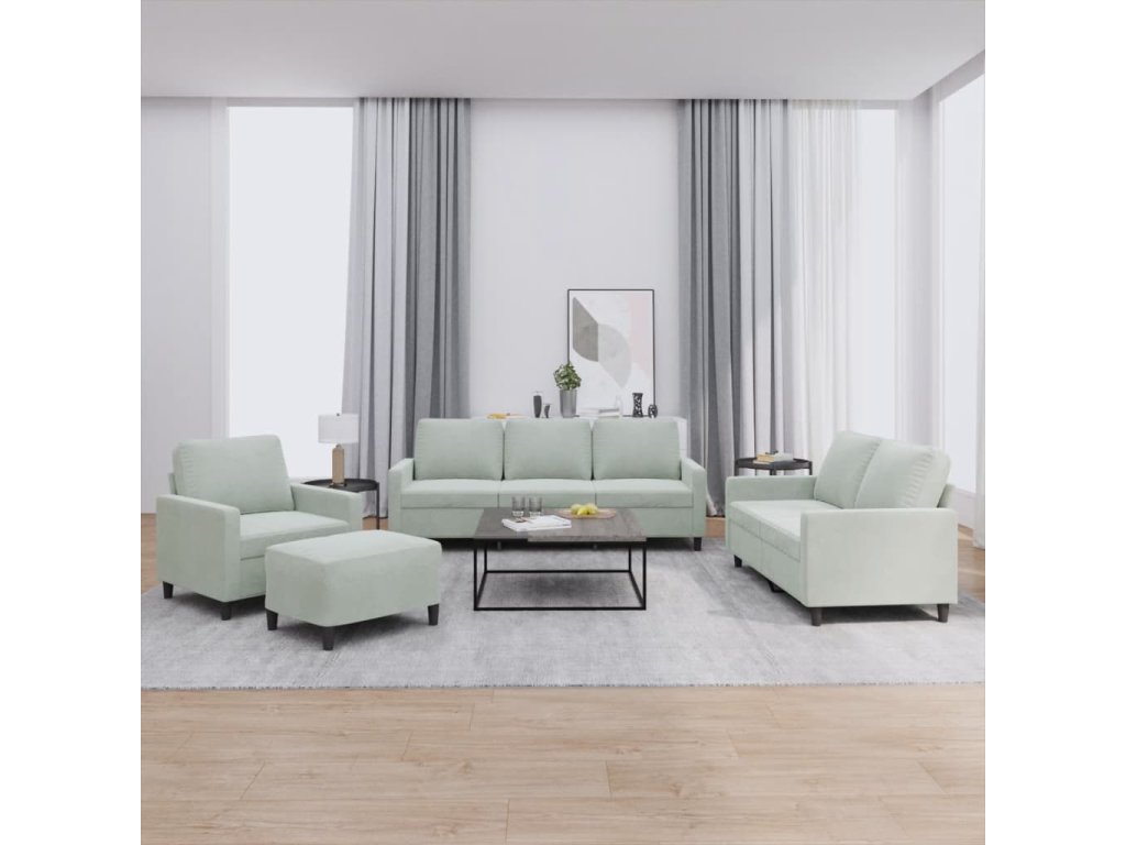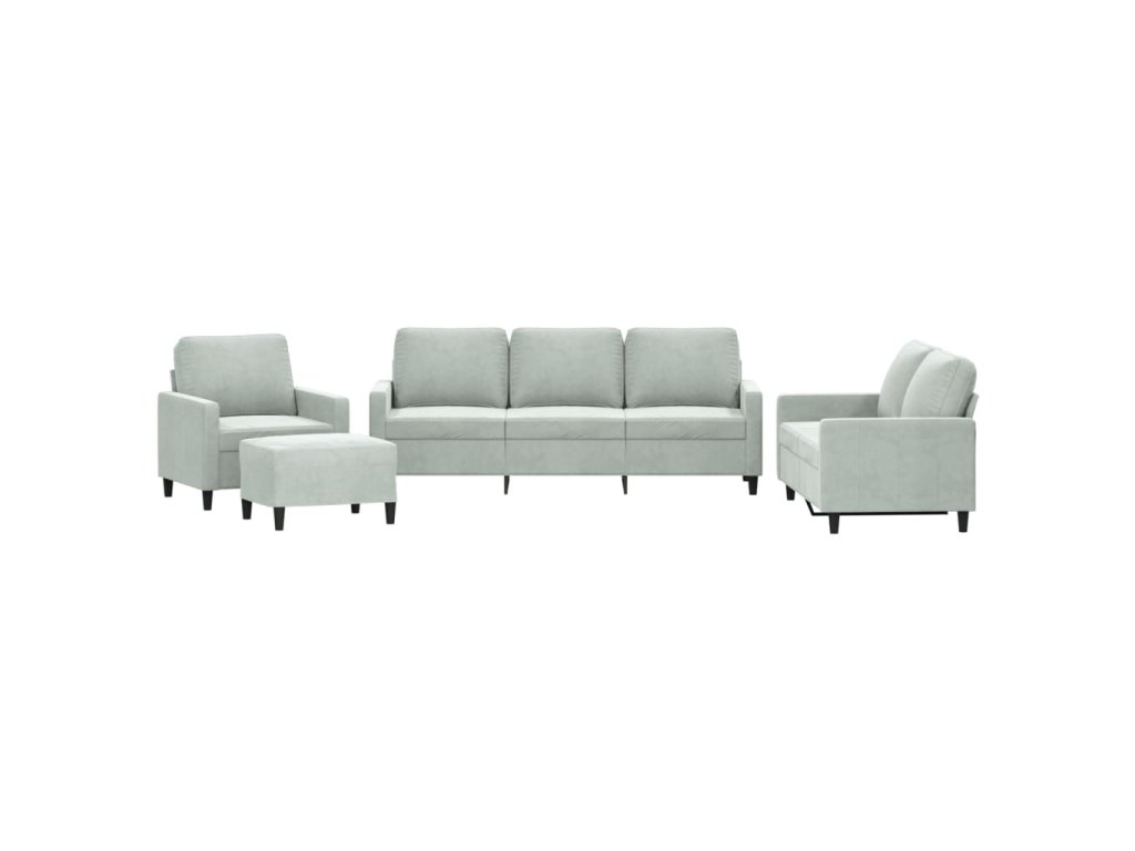 4dílná sedací souprava s poduškami světle šedá samet 3201486