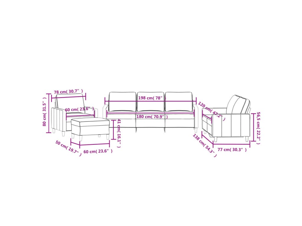 - Celkové rozměry: 198 x 77 x 80 cm (Š x H x V)