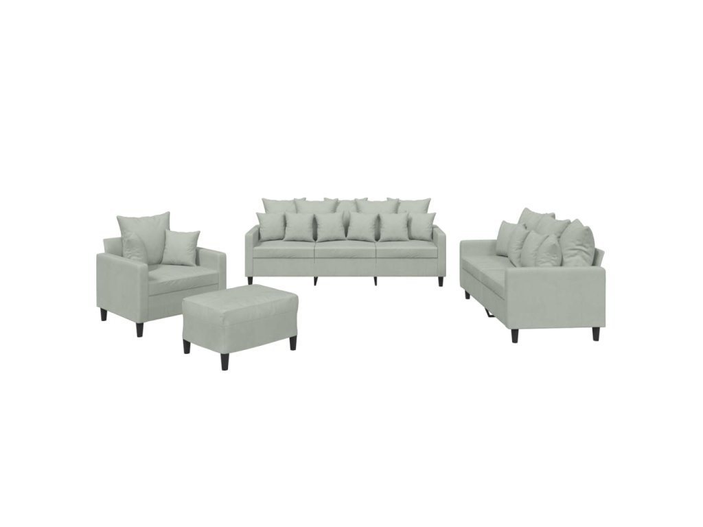4dílná sedací souprava s poduškami světle šedá samet 3201690