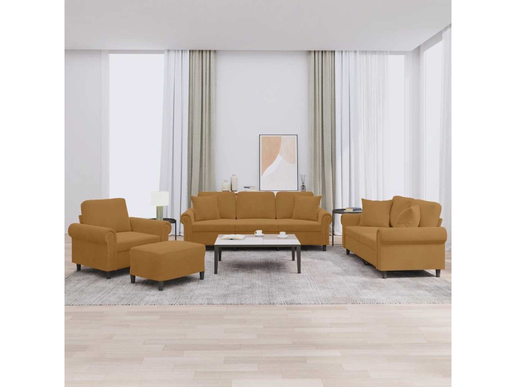 4dílná sedací souprava s polštáři hnědá samet 3202207