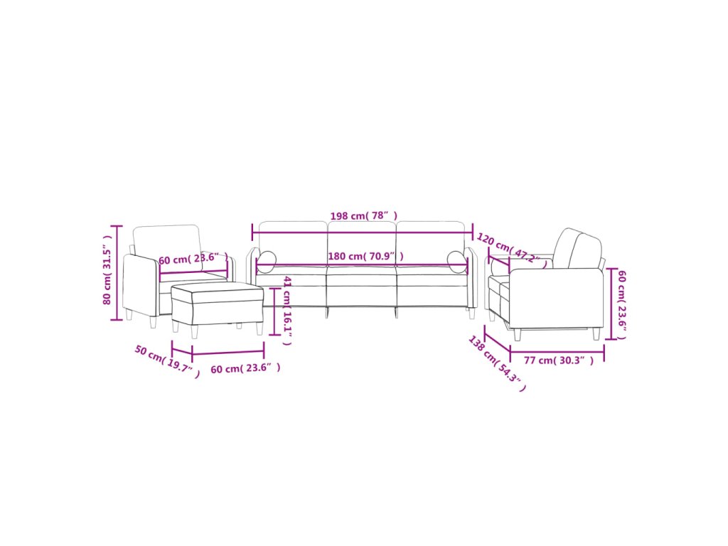 - Celkové rozměry: 198 x 77 x 80 cm (Š x H x V)