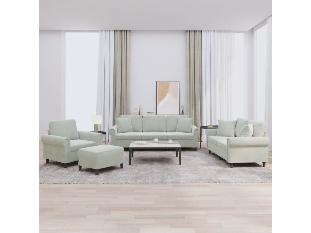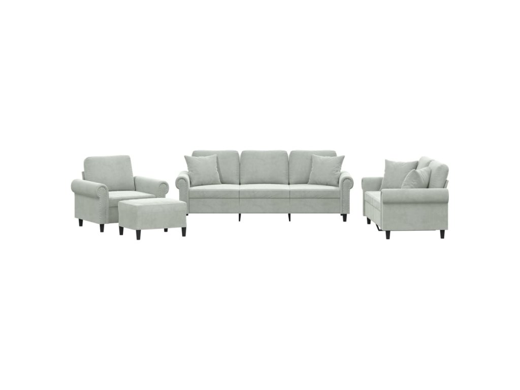 4dílná sedací souprava s polštáři světle šedá samet 3202200