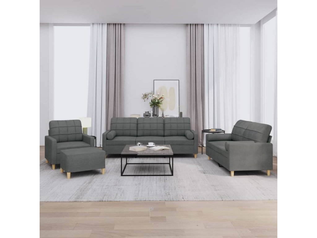 4dílná sedací souprava s polštáři tmavě šedá textil 3201267