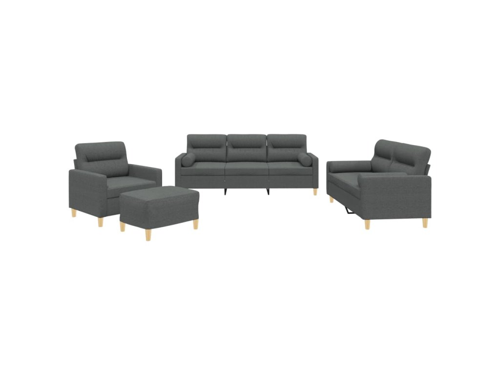 4dílná sedací souprava s polštáři tmavě šedá textil 3201561