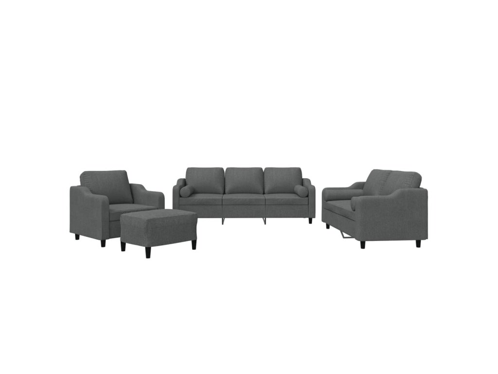 4dílná sedací souprava s polštáři tmavě šedá textil 3201795