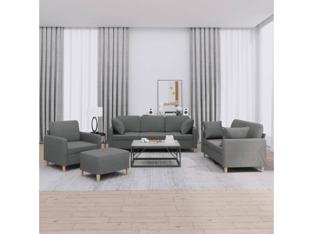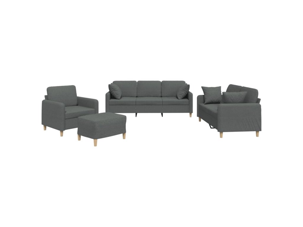 4dílná sedací souprava s polštáři tmavě šedá textil 3202079