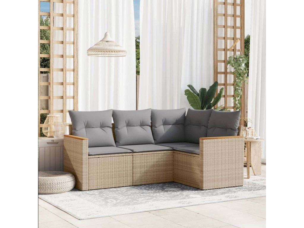 4dílná zahradní sedací souprava a podušky mix béžové polyratan 3225933