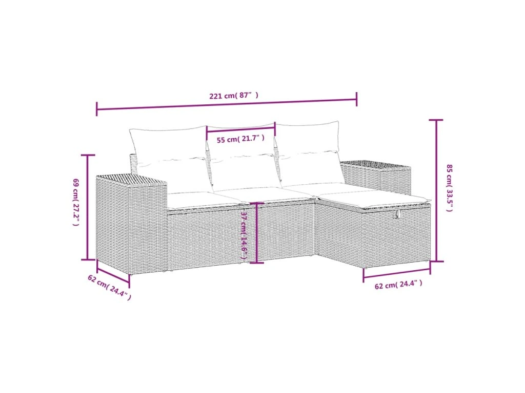 Tato zahradní sedací souprava je dokonalým doplňkem vaší zahrady, terasy nebo dvorku a poskytne vám pohodlné a příjemné místo, kde si můžete povídat s rodinou a přáteli nebo jen tak odpočívat a užívat si pobyt venku.