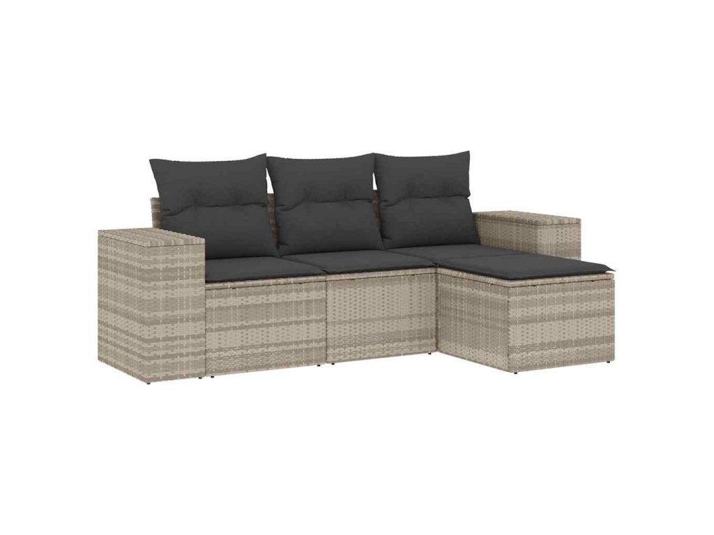4dílná zahradní sedací souprava a podušky světle šedá polyratan 3222471