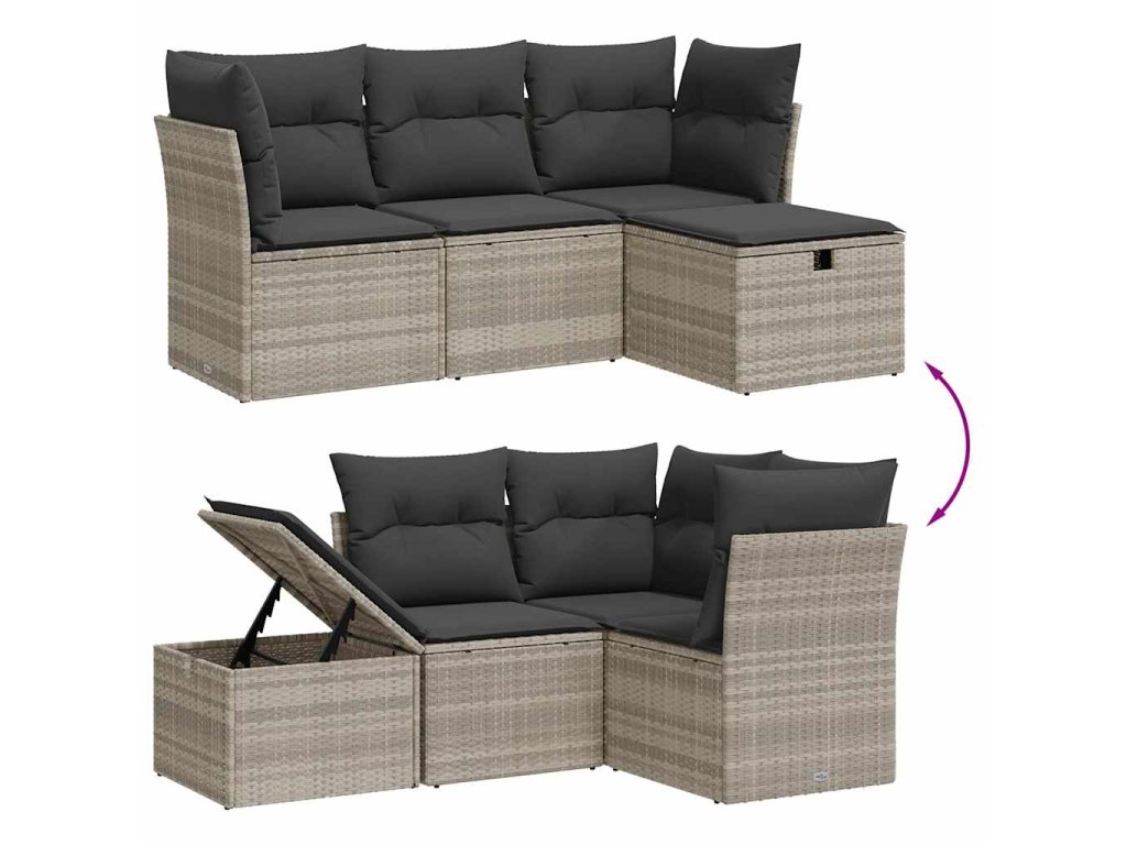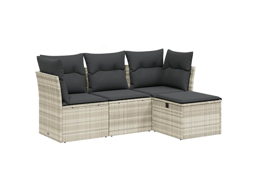 4dílná zahradní sedací souprava a podušky světle šedá polyratan 3263118