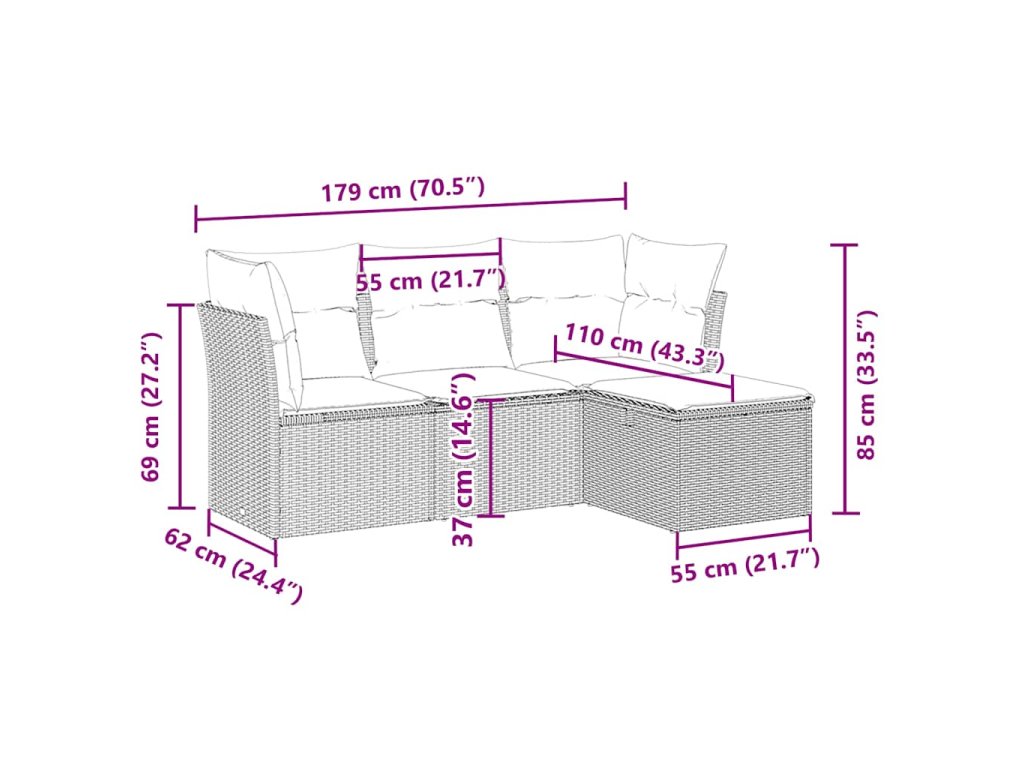 Tato zahradní sedací souprava je dokonalým doplňkem vaší zahrady, terasy nebo dvorku a poskytne vám pohodlné a příjemné místo, kde si můžete povídat s rodinou a přáteli nebo jen tak odpočívat a užívat si pobyt venku.