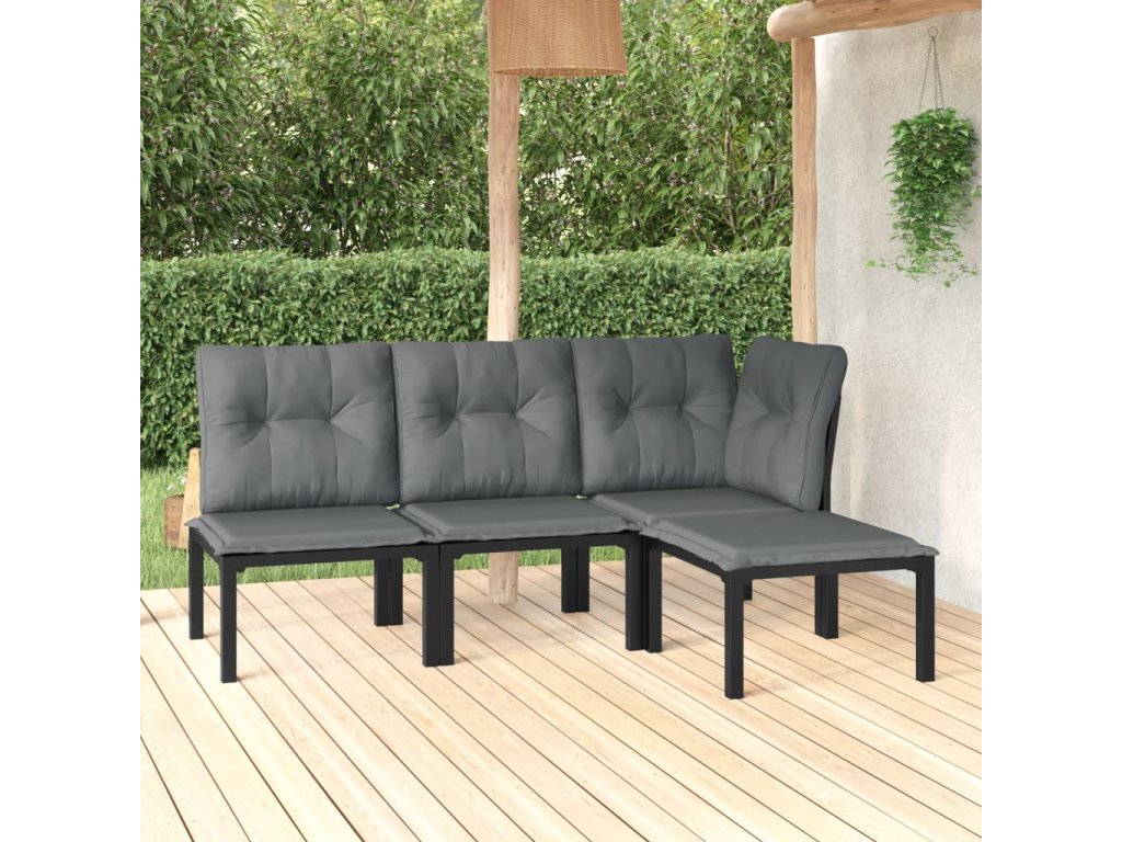 4dílná zahradní sedací souprava černá a šedá polyratan 3187743